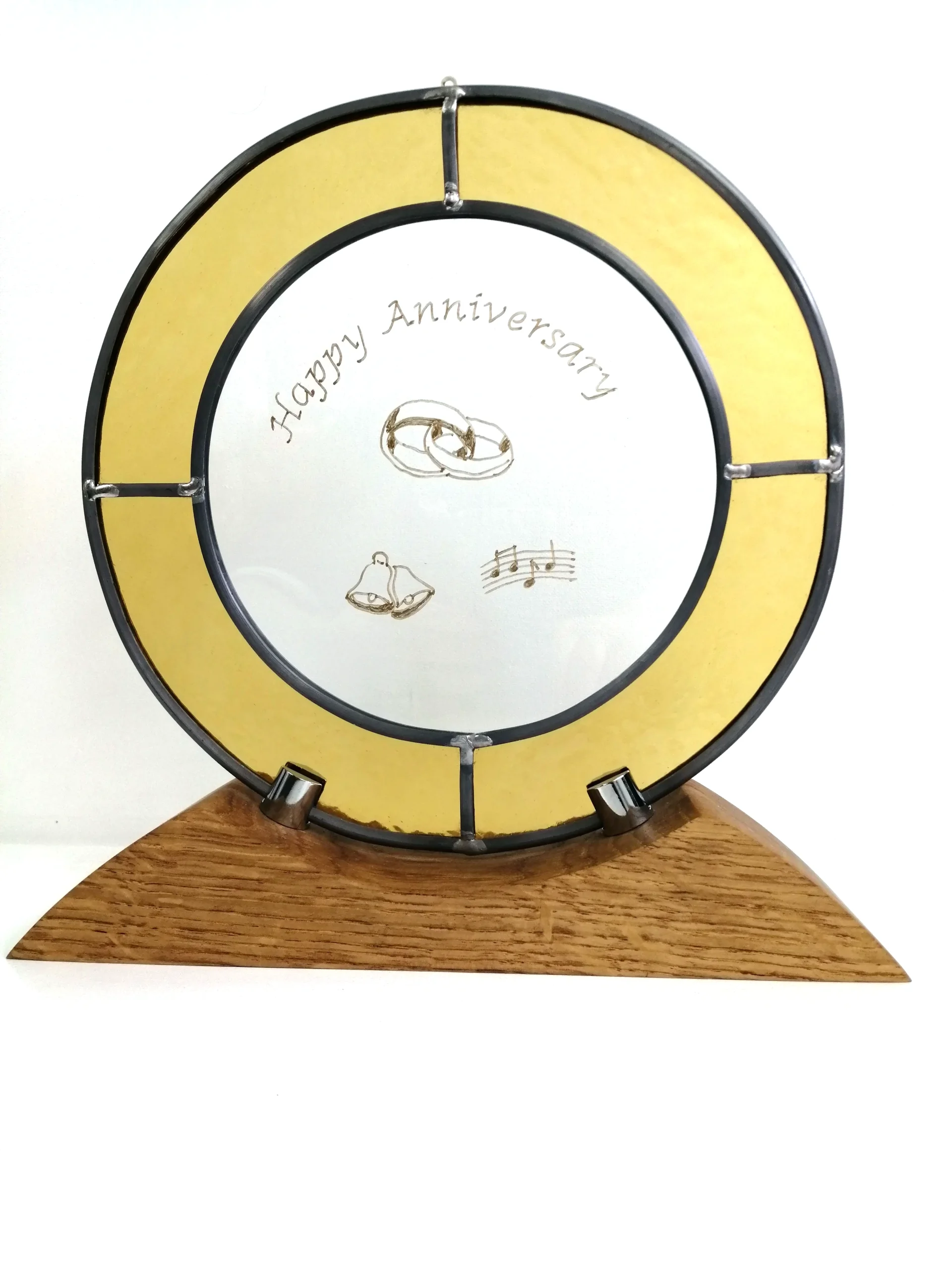 The Suncatcher comes complete with an oak stand and “hook and transparent line” for displaying or hanging in a window.