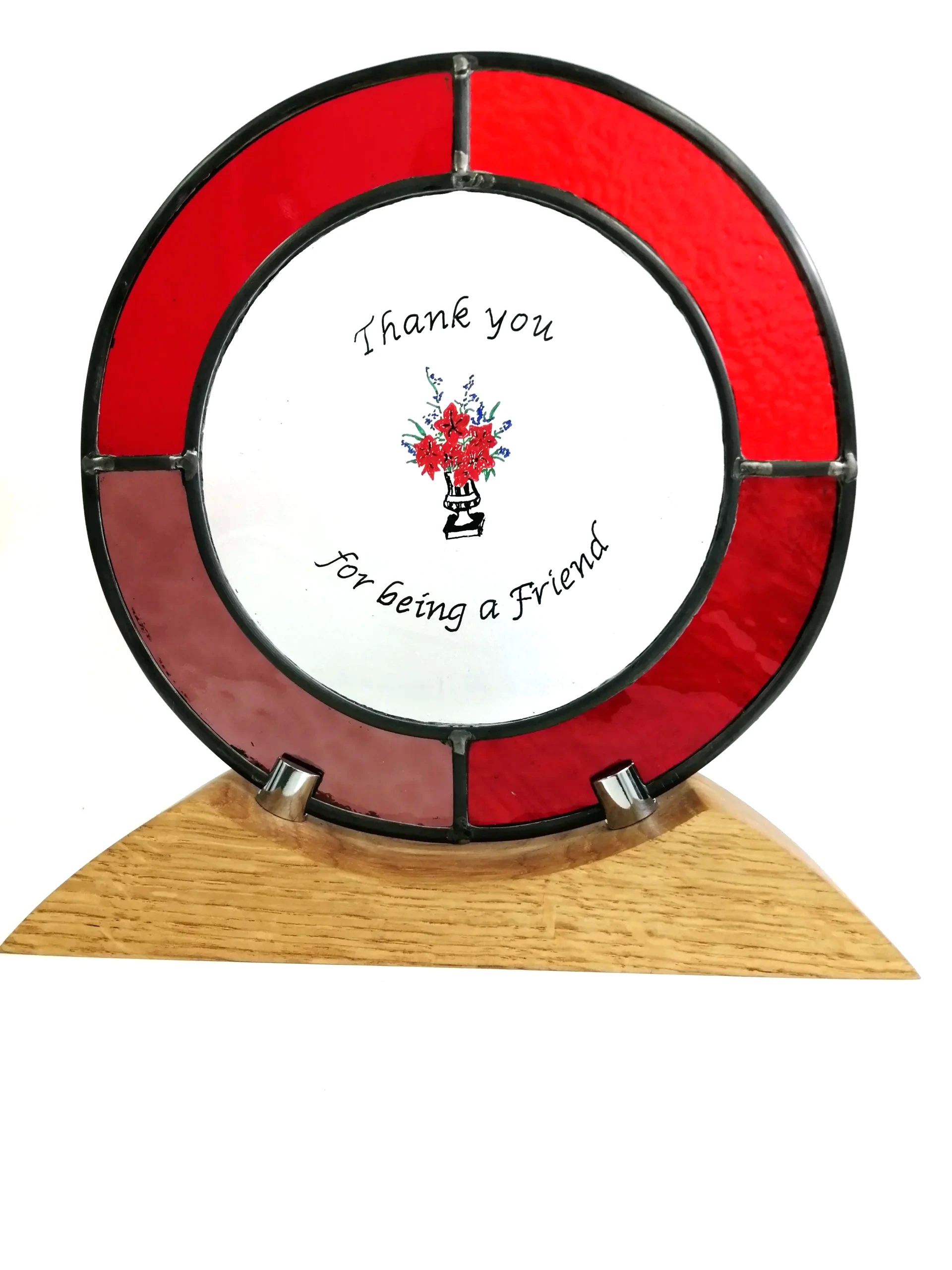 The Suncatcher comes complete with an oak stand and “hook and transparent line” for displaying or hanging in a window.