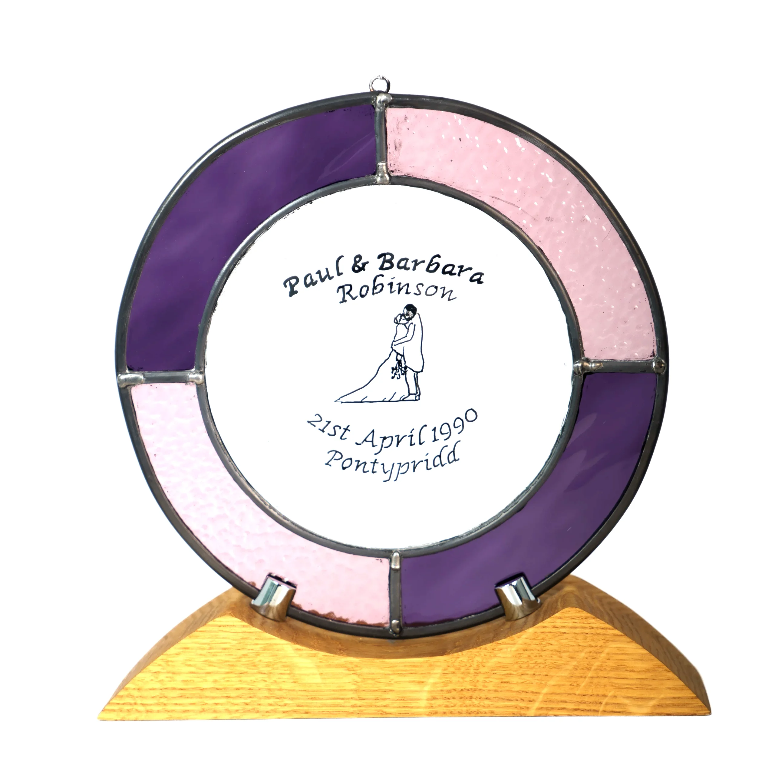 The Suncatcher comes complete with an oak stand and “hook and transparent line” for displaying or hanging in a window.